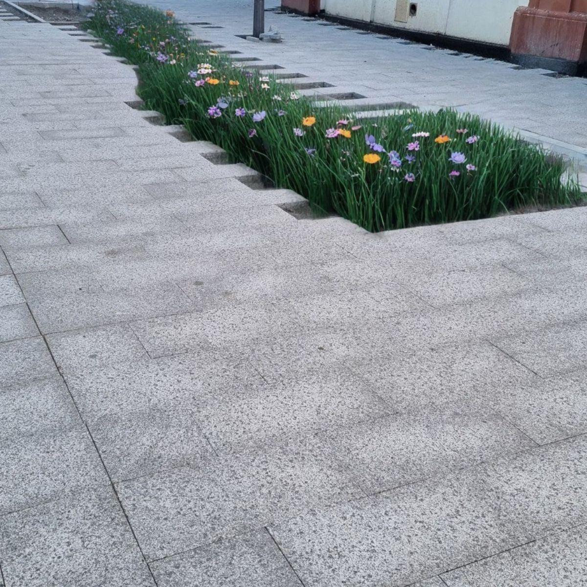 Sí. El proceso de flameado crea una microtextura superficial mediante choque térmico a más de 1,000°C, seguido de cepillado mecánico que suaviza sin eliminar la textura. Esto resulta en un coeficiente de fricción de 0.6-0.8, clasificándolo como R10-R11 según la norma DIN 51130. Es seguro para zonas húmedas, entradas expuestas a lluvia, rampas y áreas de alto tráfico peatonal.