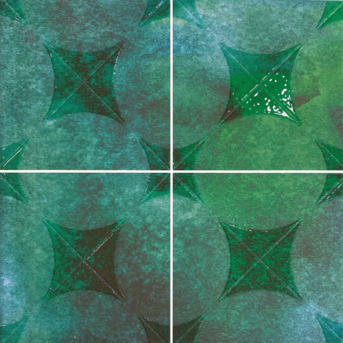 Baldosa cerámica para piscina con diseño geométrico circular en tonos verde jade que evoca la naturaleza y la frescura. Sus patrones concéntricos en tonalidades verdes crean un oasis tropical en tu espacio acuático. Ideal para piscinas rodeadas de jardín o proyectos con concepto biofílico.