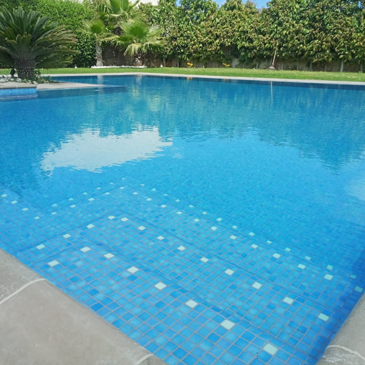 Malla de vidrio: son productos realizados 100%vidrio reciclado, fabricado y pegado con puntos PVC o cordón Poliuretano. Es un producto resistente a químicos y cambios bruscos de temperatura, resistente a manchas. También destacamos el innovador sistema de superficie antideslizante Las características del producto cumplen las exigencias europeas y americanas en lo relacionado con materiales para enchape del interior de piscinas.