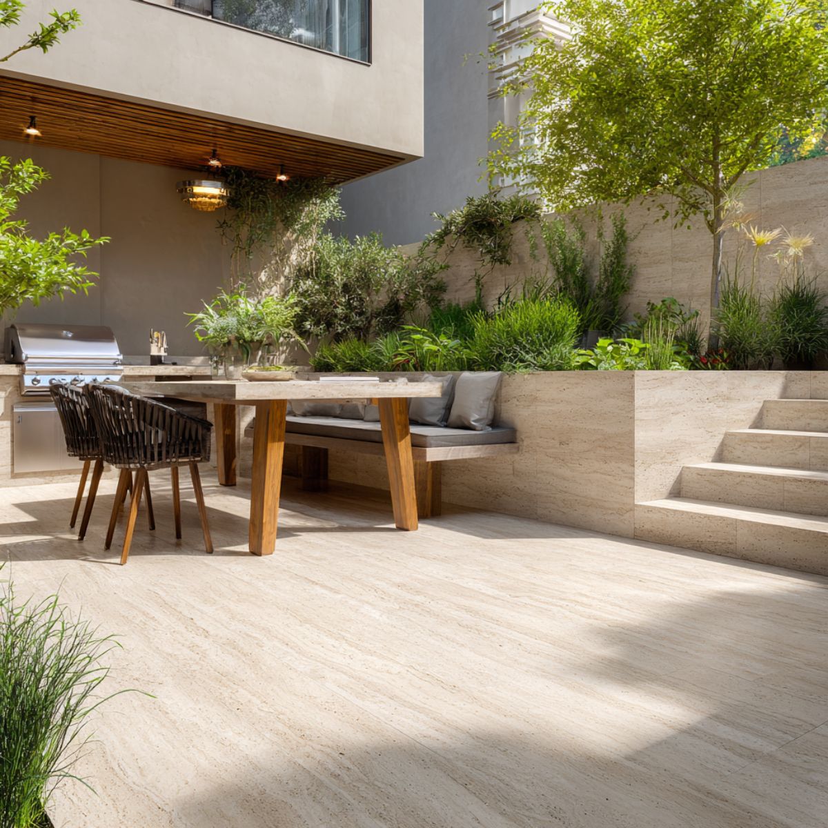 No es obligatorio. Los poros naturales del travertino cumplen una función térmica, ya que permiten que la piedra respire, ayudando a mantener el piso más fresco, especialmente en exteriores y zonas soleadas.